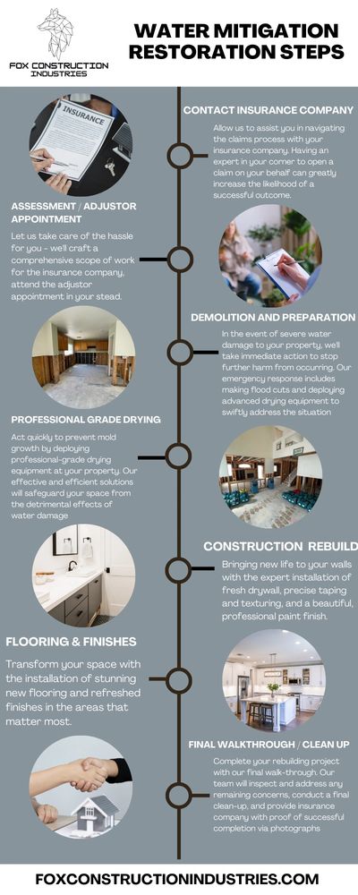 5. Restoration: The final step is to restore the property to its pre-damage condition. This may involve repairing or replacing damaged drywall, flooring, and other structural components, as well as addressing any underlying issues that may have contributed to the water damage.